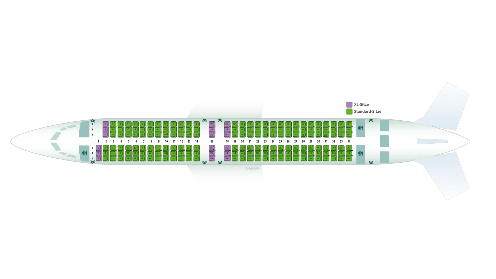 Wenn Sie keine Sitzplätze bei Buchung auswählen, erfolgt die Zuteilung der Sitzplätze beim Check-In nach dem Zufallsprinzip.