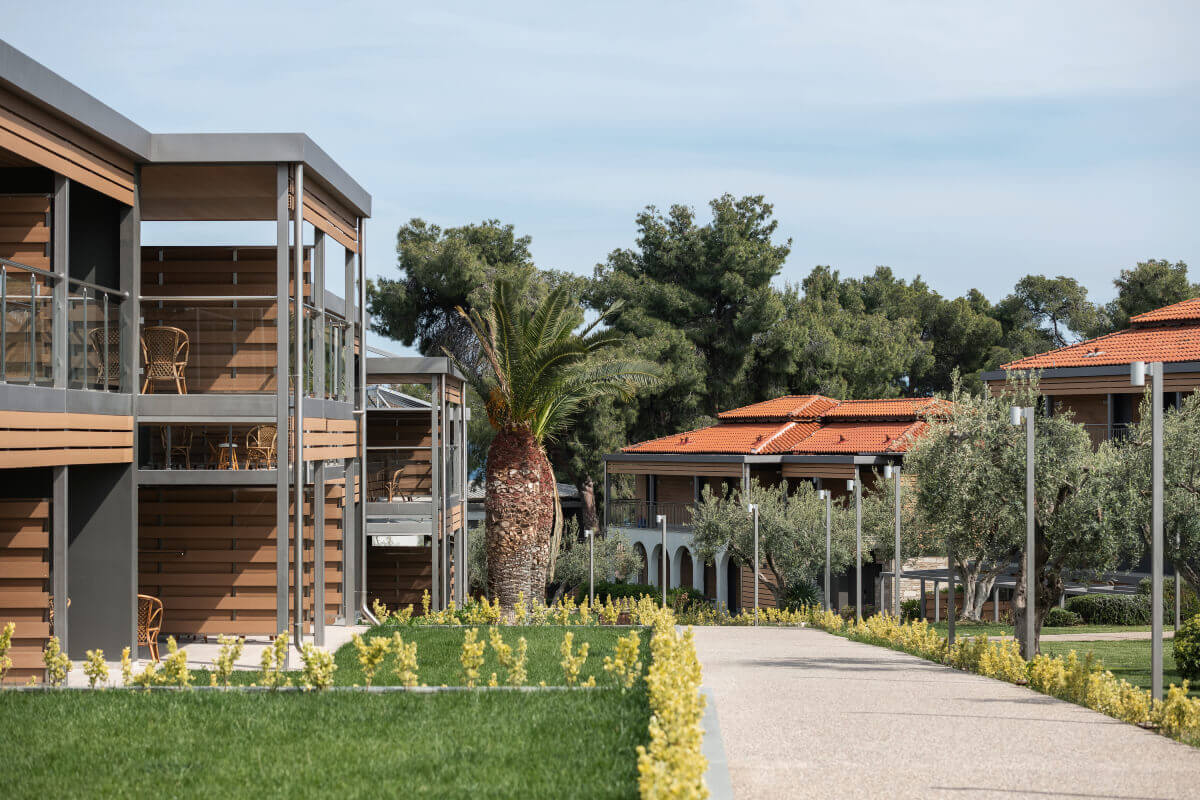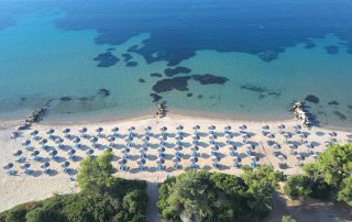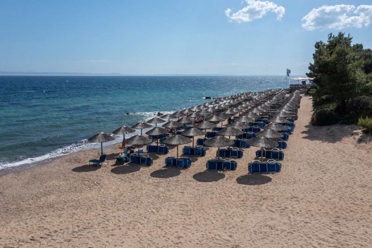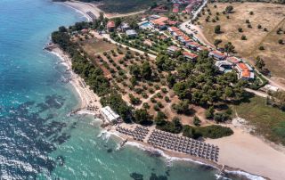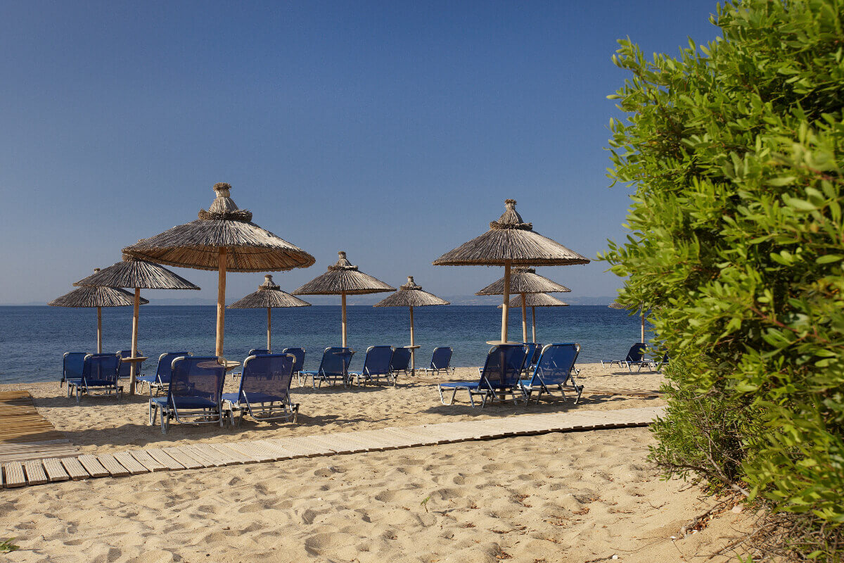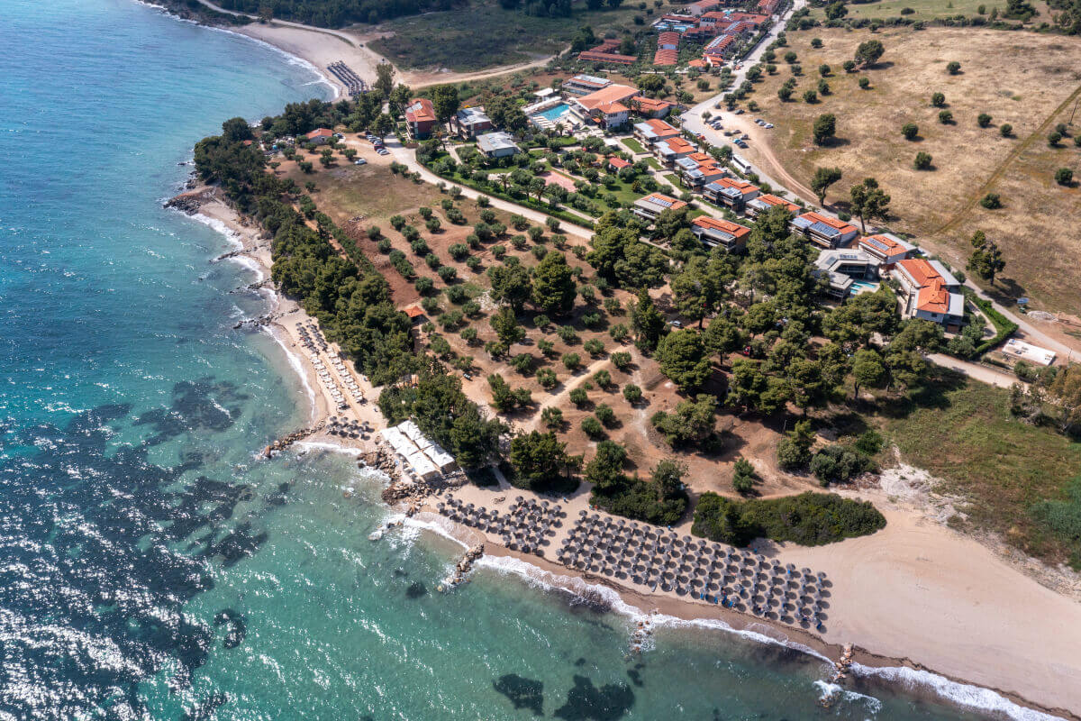 Das Hotel vereint familiäre Gastfreundschaft mit mediterranem Urlaubsflair. Die Lage an der Küste von Sithonia, nur wenige Schritte vom schönen Strand entfernt, macht das Resort zum idealen Rückzugsort. Die Poollandschaft mit Hauptpool, Kinderbecken und Sonnenterrassen lädt zum Entspannen ein (saisonal). Für noch mehr Erholung sorgt das moderne Spa-Center mit Sauna und einer Auswahl an Massagen und Schönheitsanwendungen (gegen Gebühr). Sportbegeisterte freuen sich über ein Fitnessstudio, Tennisplatz und Wassersportmöglichkeiten in der Umgebung. Kulinarisch bietet das Resort ein abwechslungsreiches Buffetrestaurant, das À-la-carte-Restaurant „Olives“ (gegen Gebühr) mit mediterraner Küche sowie eine traditionelle Taverne (gegen Gebühr) direkt am Meer. Zwei Bars sorgen für erfrischende Getränke und entspannte Momente mit Blick auf das Meer.