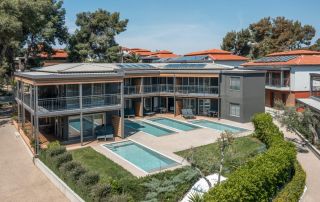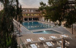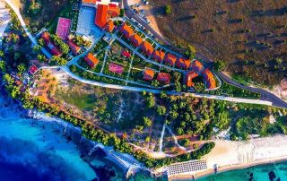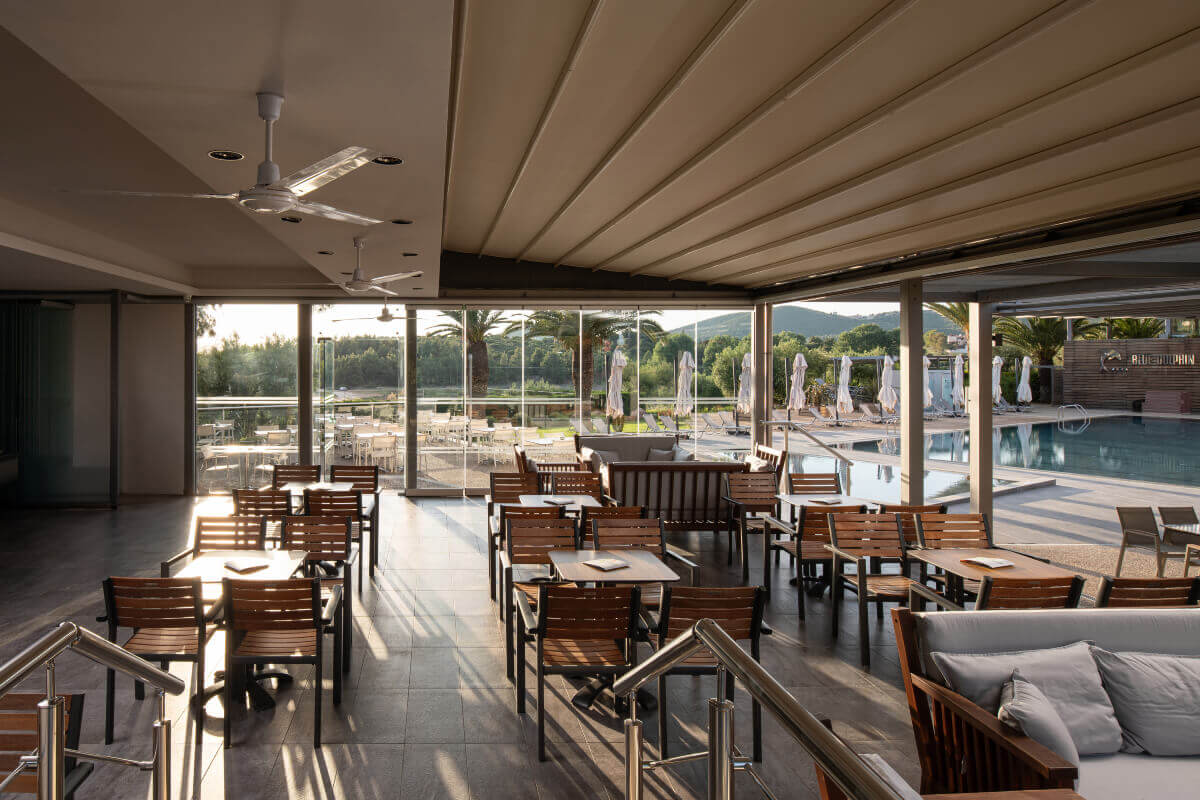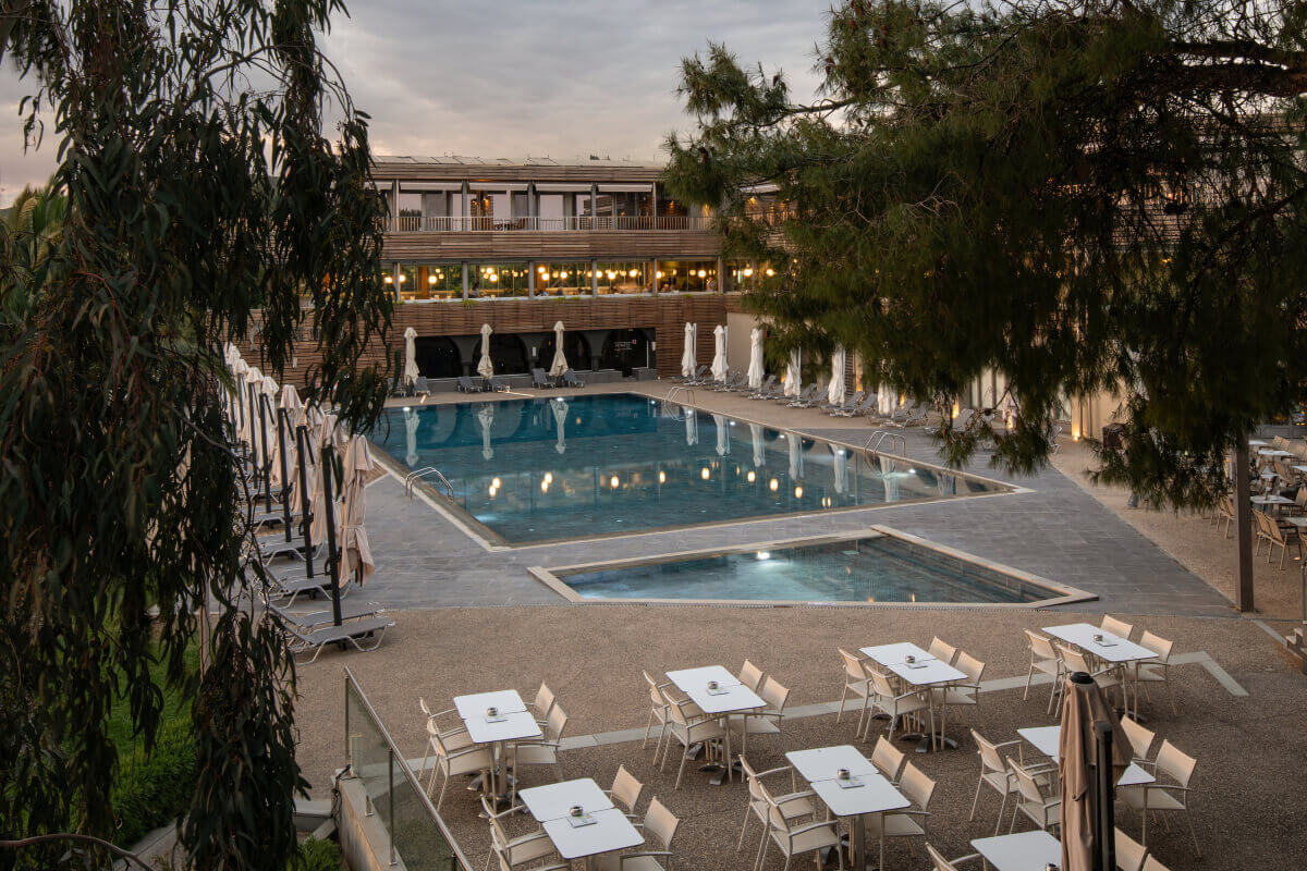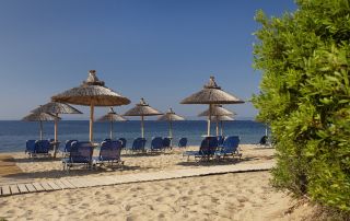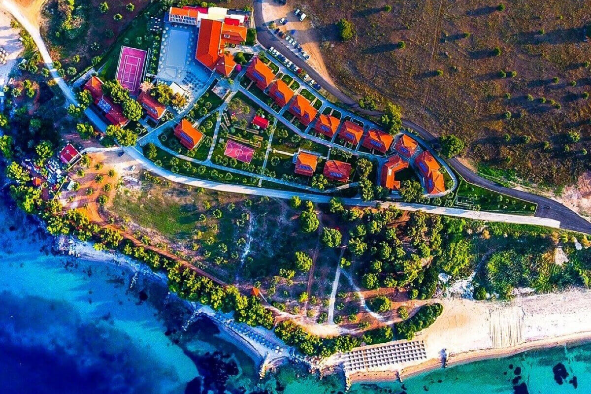 Das Hotel vereint familiäre Gastfreundschaft mit mediterranem Urlaubsflair. Die Lage an der Küste von Sithonia, nur wenige Schritte vom schönen Strand entfernt, macht das Resort zum idealen Rückzugsort. Die Poollandschaft mit Hauptpool, Kinderbecken und Sonnenterrassen lädt zum Entspannen ein (saisonal). Für noch mehr Erholung sorgt das moderne Spa-Center mit Sauna und einer Auswahl an Massagen und Schönheitsanwendungen (gegen Gebühr). Sportbegeisterte freuen sich über ein Fitnessstudio, Tennisplatz und Wassersportmöglichkeiten in der Umgebung. Kulinarisch bietet das Resort ein abwechslungsreiches Buffetrestaurant, das À-la-carte-Restaurant „Olives“ (gegen Gebühr) mit mediterraner Küche sowie eine traditionelle Taverne (gegen Gebühr) direkt am Meer. Zwei Bars sorgen für erfrischende Getränke und entspannte Momente mit Blick auf das Meer.