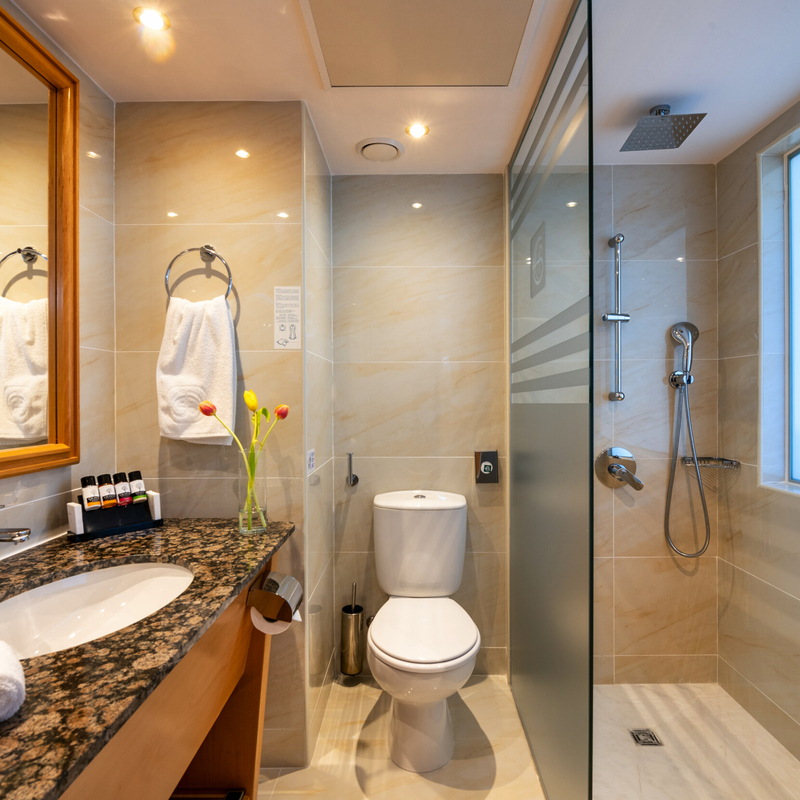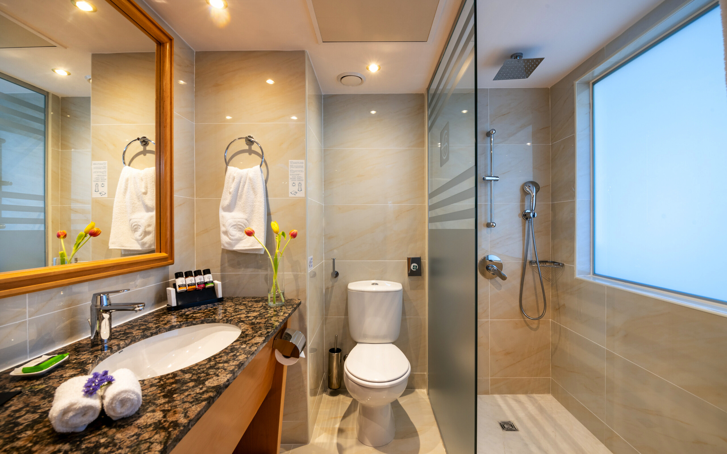 Die Zimmer mit Terrasse verfügen über einen direkten Zugang zu einem Gemeinschaftspool (4x27m). Zudem genießen Gäste weitere Vorteile, wie z. B. die kostenlose Nutzung von Sauna und Dampfbad (nach Verfügbarkeit) und verlängerte Frühstückszeiten.