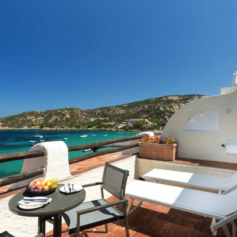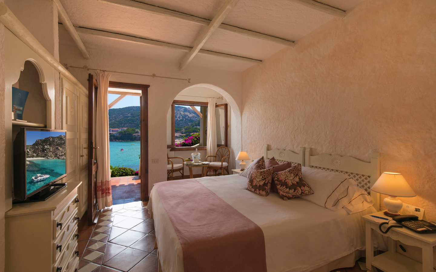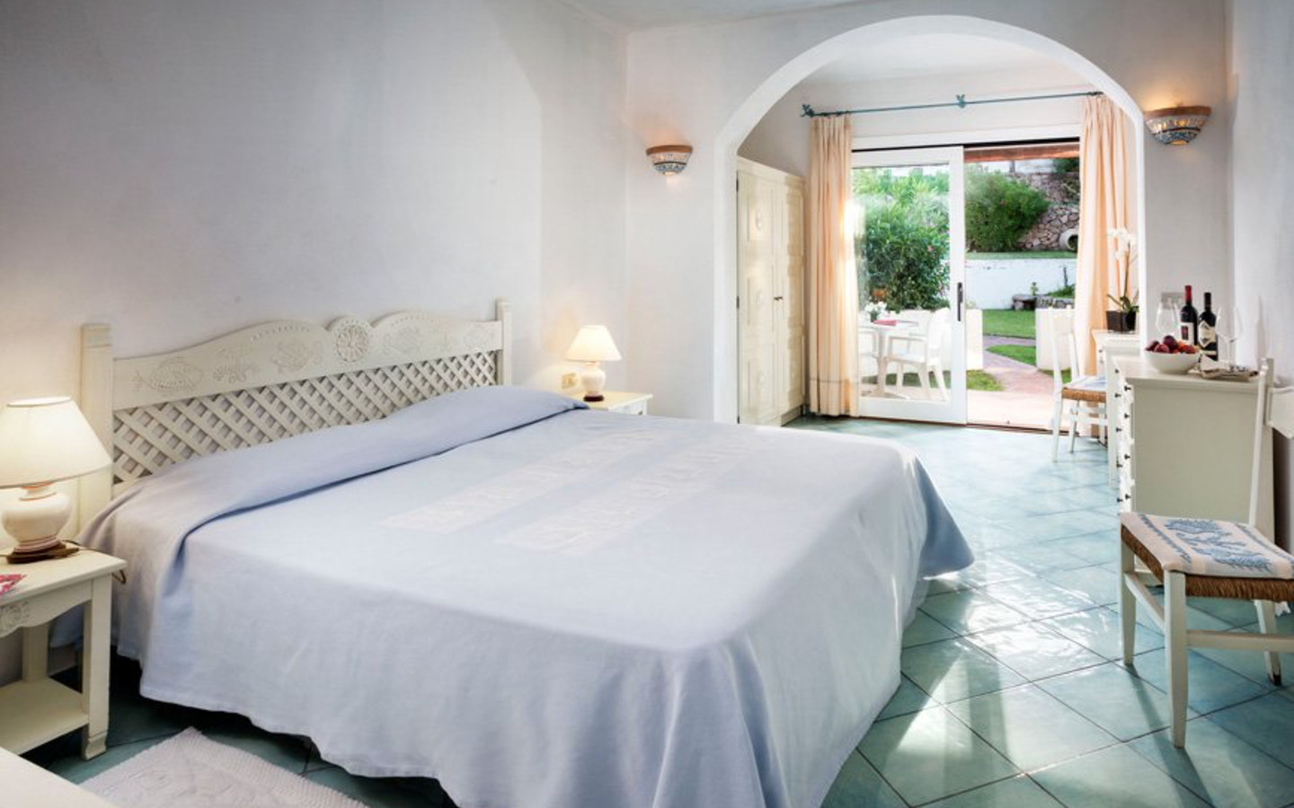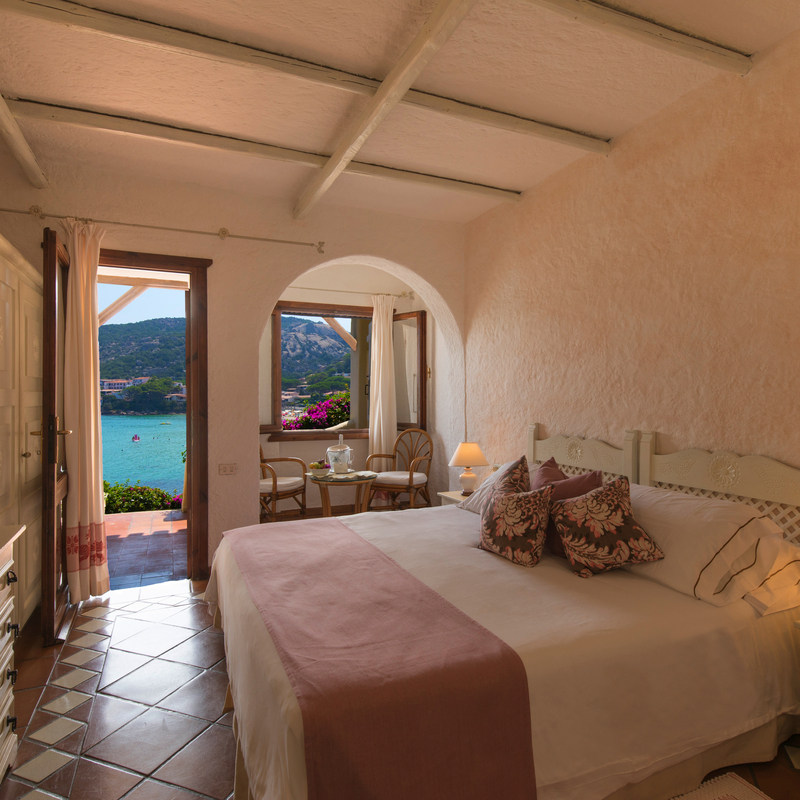 Im traditionellen, sardischen Stil. Mit Bad oder Dusche/WC, Föhn, Klimaanlage, TV, Balkon oder Terrasse und Meerblick. Die Junior Suite verfügt zudem über einen kleinen Sitzbereich.