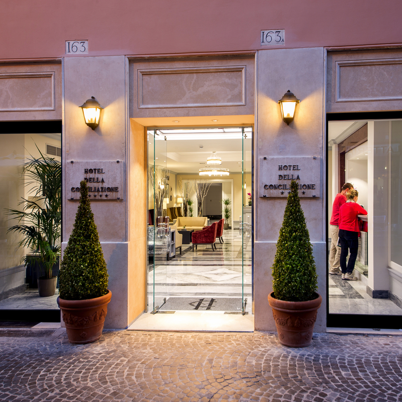 Das Hotel Della Conciliazione ist ein echter Tipp für ein Premium Stadterlebnis. In der Umgebung findet man zahlreiche Restaurants und Bars und gerade abends hat man hier eine besondere Atmosphäre. Das Gebäude schmiegt sich unaufdringlich in das Umfeld ein, bietet jedoch ein traditionell modernes Ambiente mit viel Komfort.