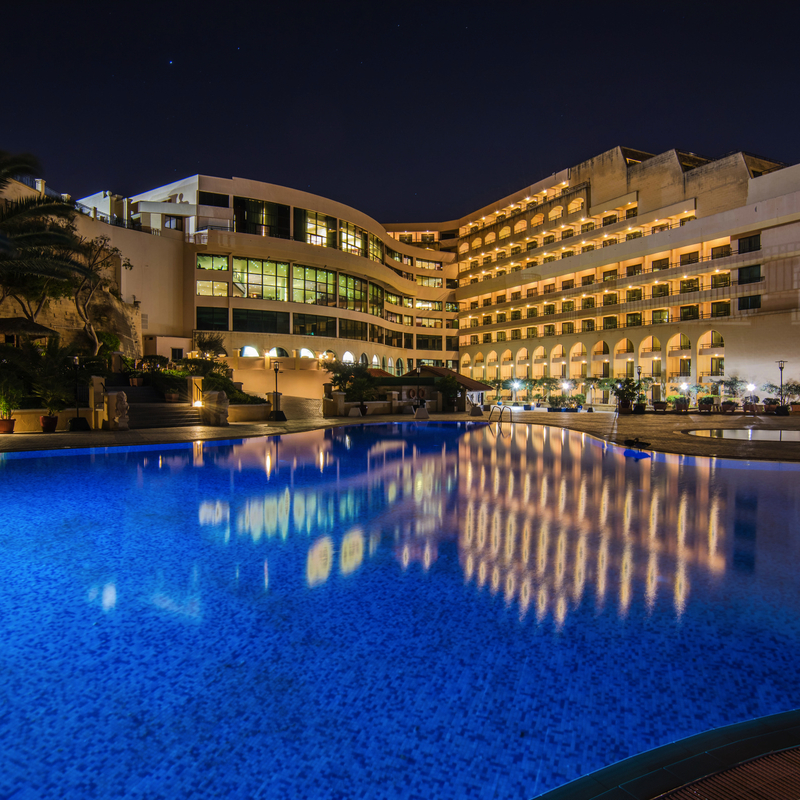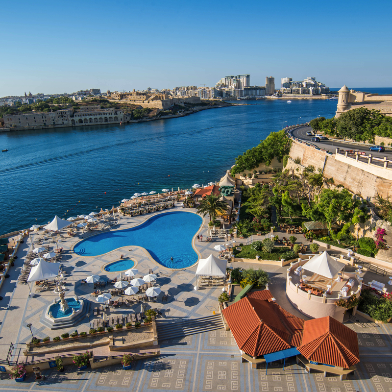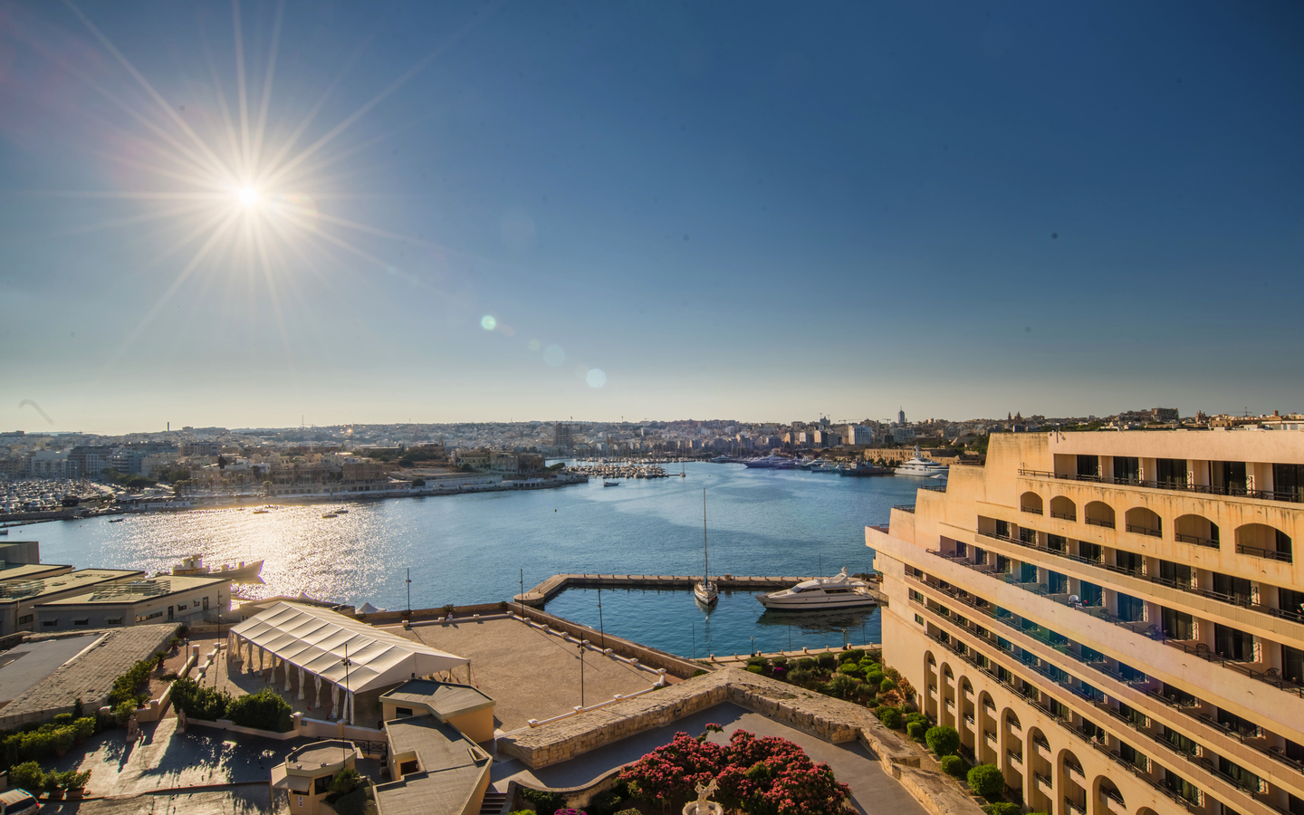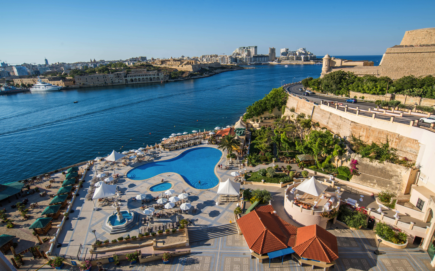 Das Hotel befindet sich direkt an der historischen Stadtmauer von Valletta im und bietet spektakuläre Ausblicke auf den Marsamxett-Hafen und die Manoel Island und die private Hotel-Marina. Vom Hotel sind es nur etwa 1,5 km zur Altstadt Valletta. Eine Bushaltestelle ist nur wenige Minuten vom Hotel entfernt.