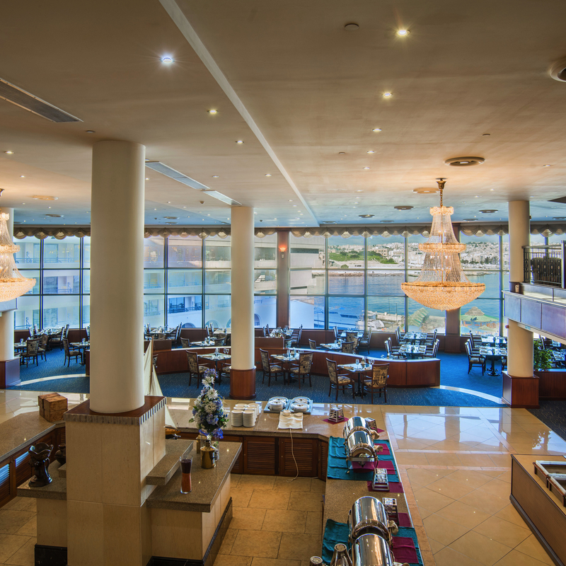 Die Anlage verfügt über mehrere exklusive Restaurants (Buffet- und À-la-Carte-Optionen mit mediterranen und internationalen Spezialitäten, ggfs. gegen Zuzahlung), eine Pool- und Lobbybar sowie eine Tiki-Bar direkt am Wasser.