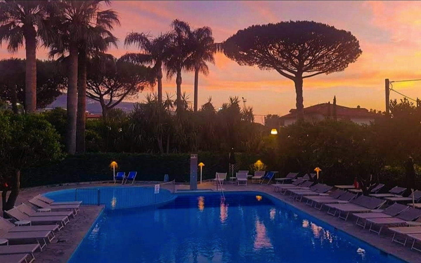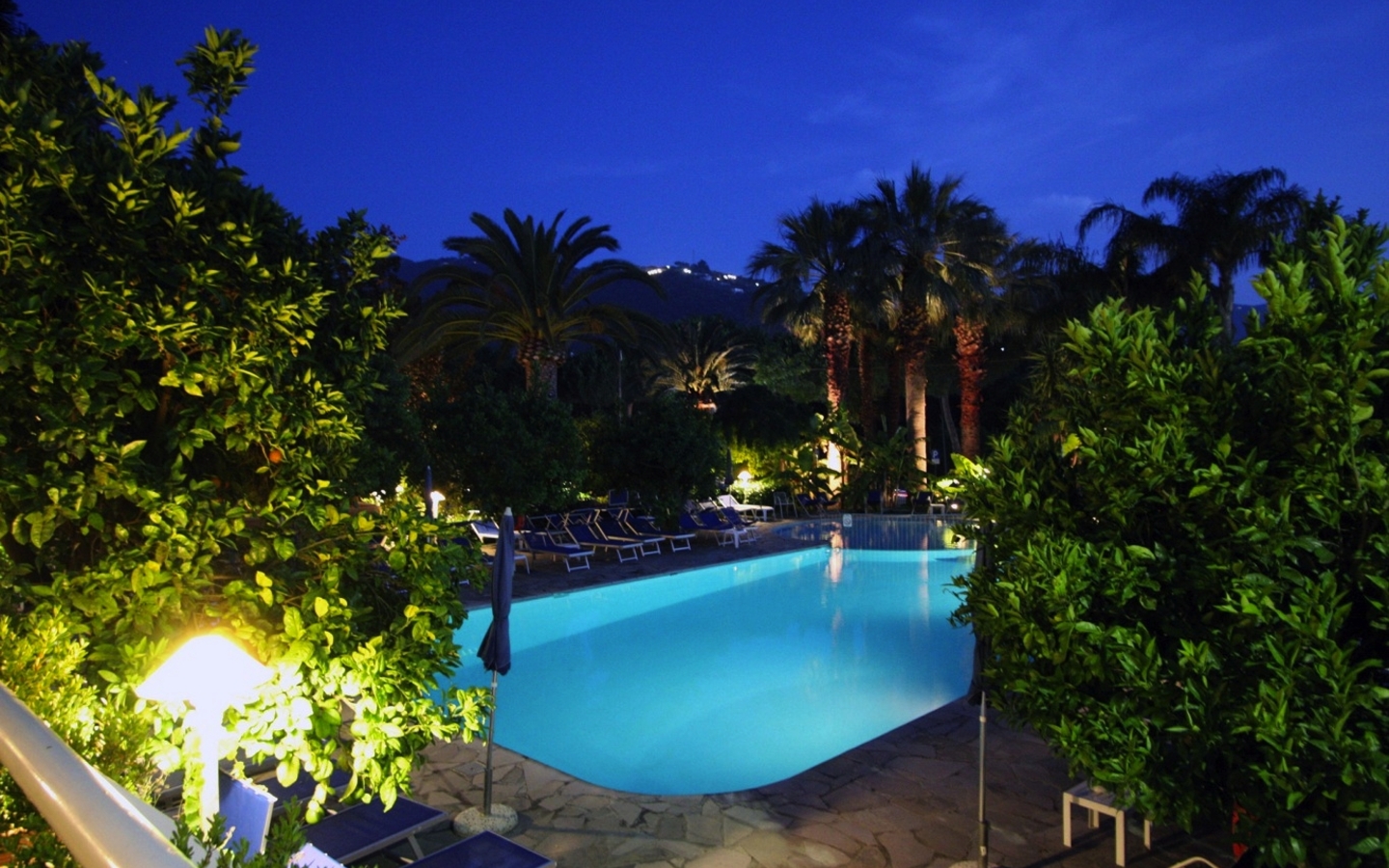 Der großzügige Außenpool (saisonal) mit separatem Kinderbereich und Sonnenterrasse bietet einen herrlichen Blick auf den Golf von Neapel.