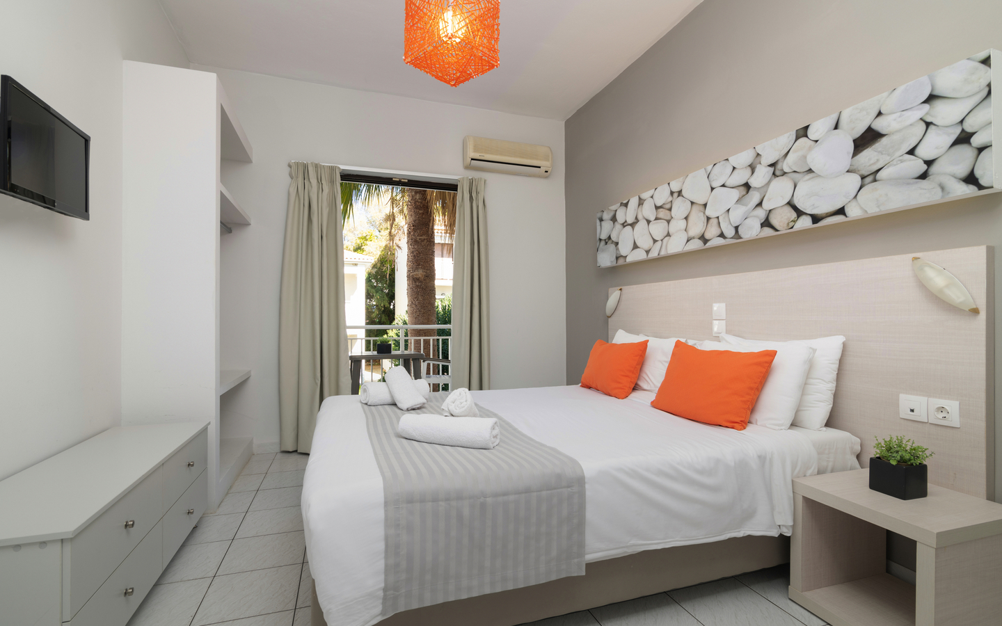 Helle, funktional eingerichtete Zimmer. Sie verfügen über Klimaanlage, TV, Safe sowie Bad oder Dusche/WC und bieten Balkon oder Terrasse. Die Familienzimmer sind größer als die Standardzimmer und bieten Platz für bis zu 4 Personen.