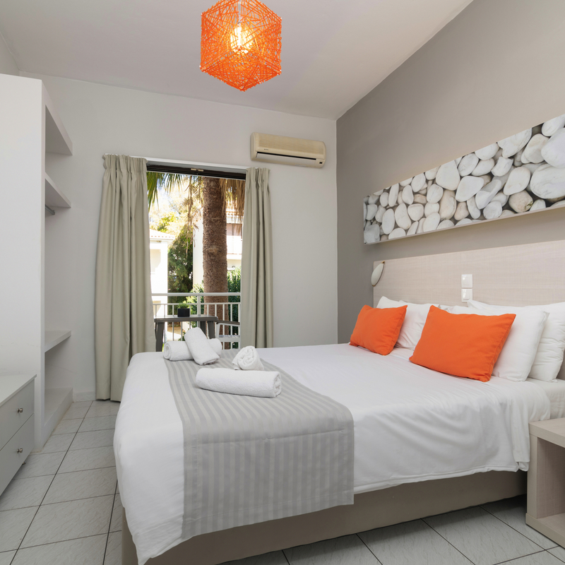 Das Hotel liegt in idealer Lage nahe des Sandstrands von Kalamaki – perfekt für Badeurlauber und Sonnenanbeter. Geschäfte, Restaurants und Bars sind bequem zu Fuß erreichbar, und die Inselhauptstadt Zakynthos-Stadt und das bekannte Laganas liegt nur wenige Kilometer entfernt. Eine Bushaltestelle befindet sich in der Nähe.