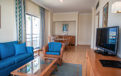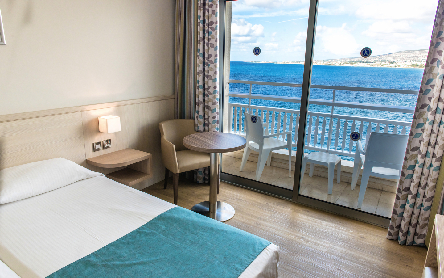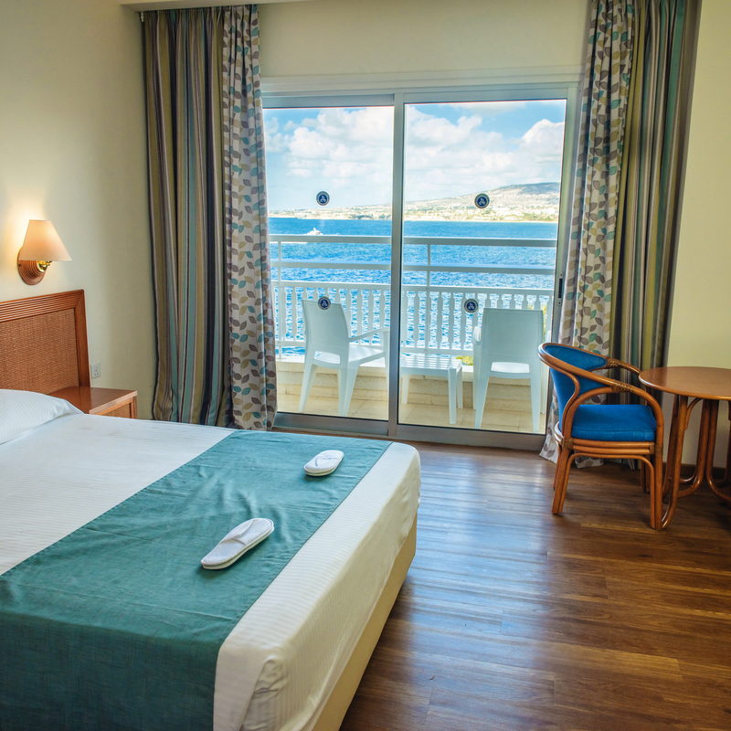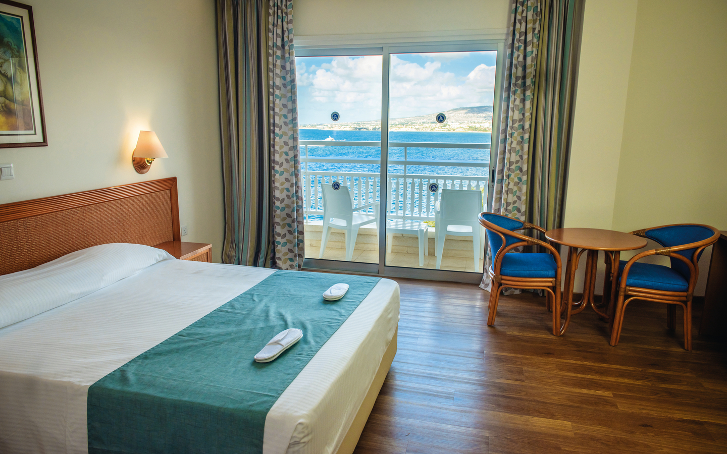 Wohnlich eingerichtet mit Bad oder Dusche/WC, Klimaanlage (saisonal), TV, Balkon oder Terrasse und mit Meerblick.