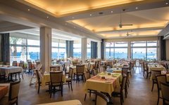 Mehrere Bars und das Hauptrestaurant mit kleinem Außenbereich sorgen für das leibliche Wohl.