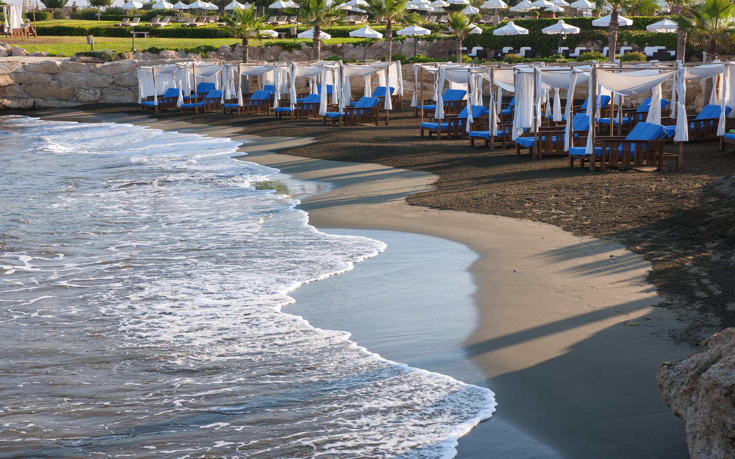Direkt am Strand gelegen und nur ca. 2 km über die Uferpromenade von Paphos Stadt entfernt.