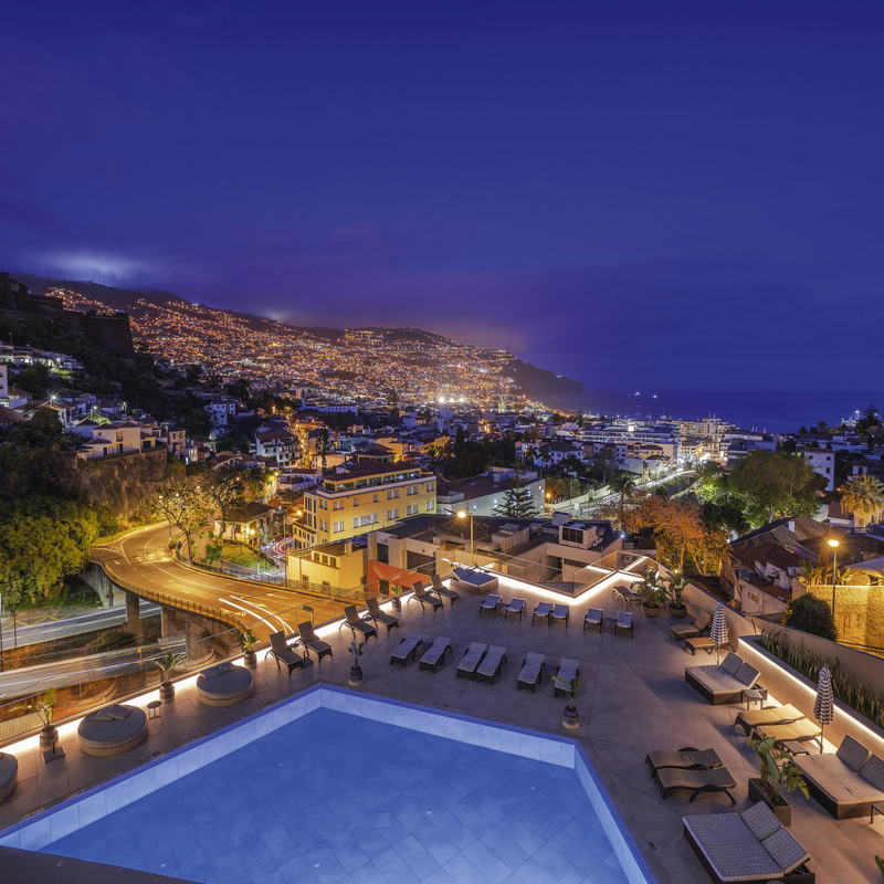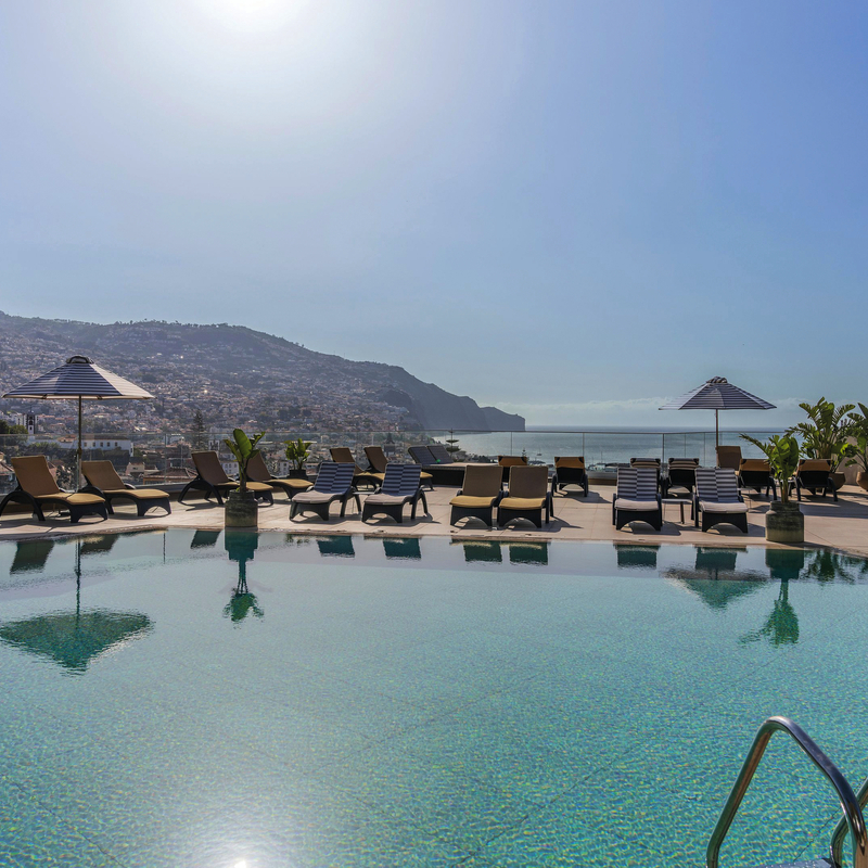 Die schöne Lobbybar (auch mit Livemusik) punktet mit spektakulärem Panoramablick und ist ein abendlicher Treffpunkt, wenn die Lichter Funchals angehen. Der Pool (Liegen und Sonnenschutz inklusive) mit schöner Bar sorgt für entspannte Stunden. Im Hotel gibt es ebenfalls ein Hallenbad und Spa Bereich (gegen Gebühr).