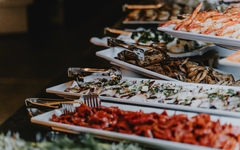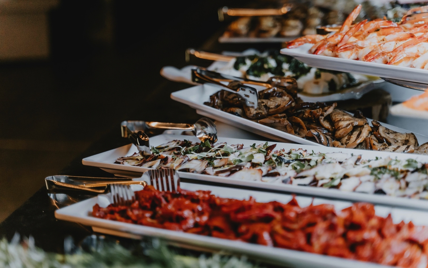 Das schöne Hauptrestaurant (auch mit Außenbereich) verwöhnt mit internationalen Köstlichkeiten.