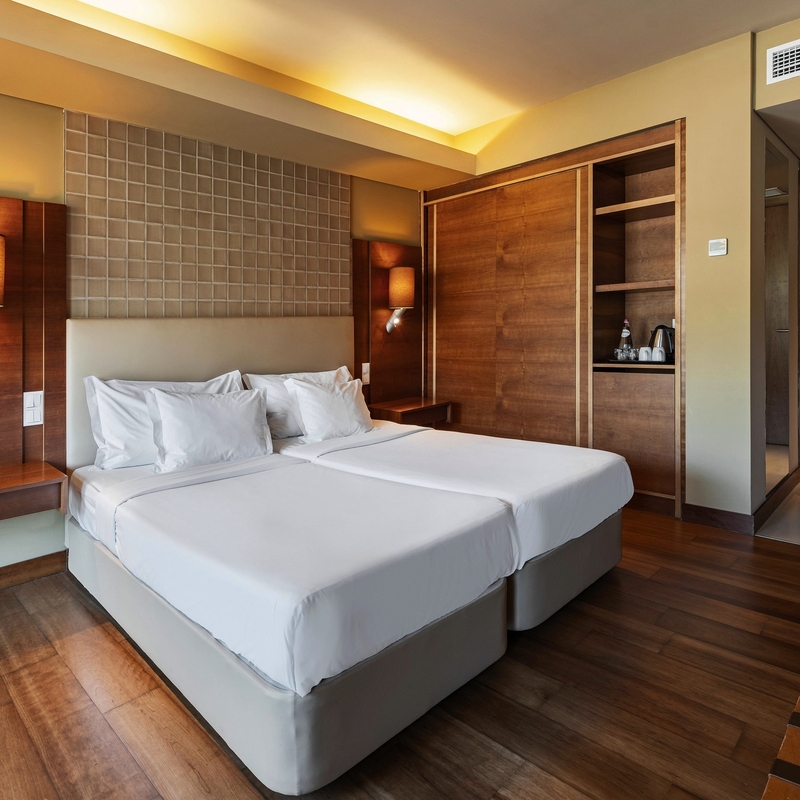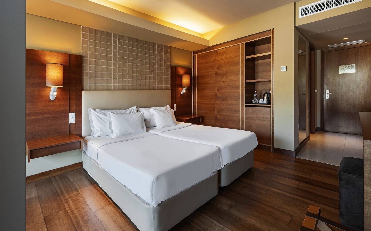 Moderne, komfortable Zimmer mit Bad oder Dusche/WC, Klimaanlage, TV und Balkon oder Terrasse. Die Deluxe Junior Suiten sind im Vergleich zu den Standardzimmern größer. Darüber hinaus bieten sie neben einer gehobeneren Ausstattung weitere Annehmlichkeiten und Vergünstigungen.