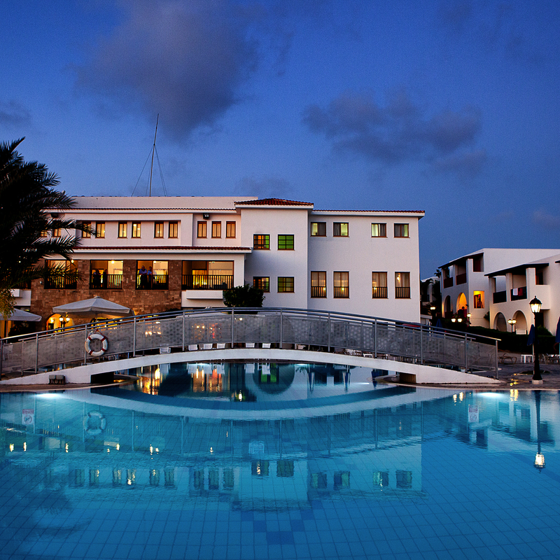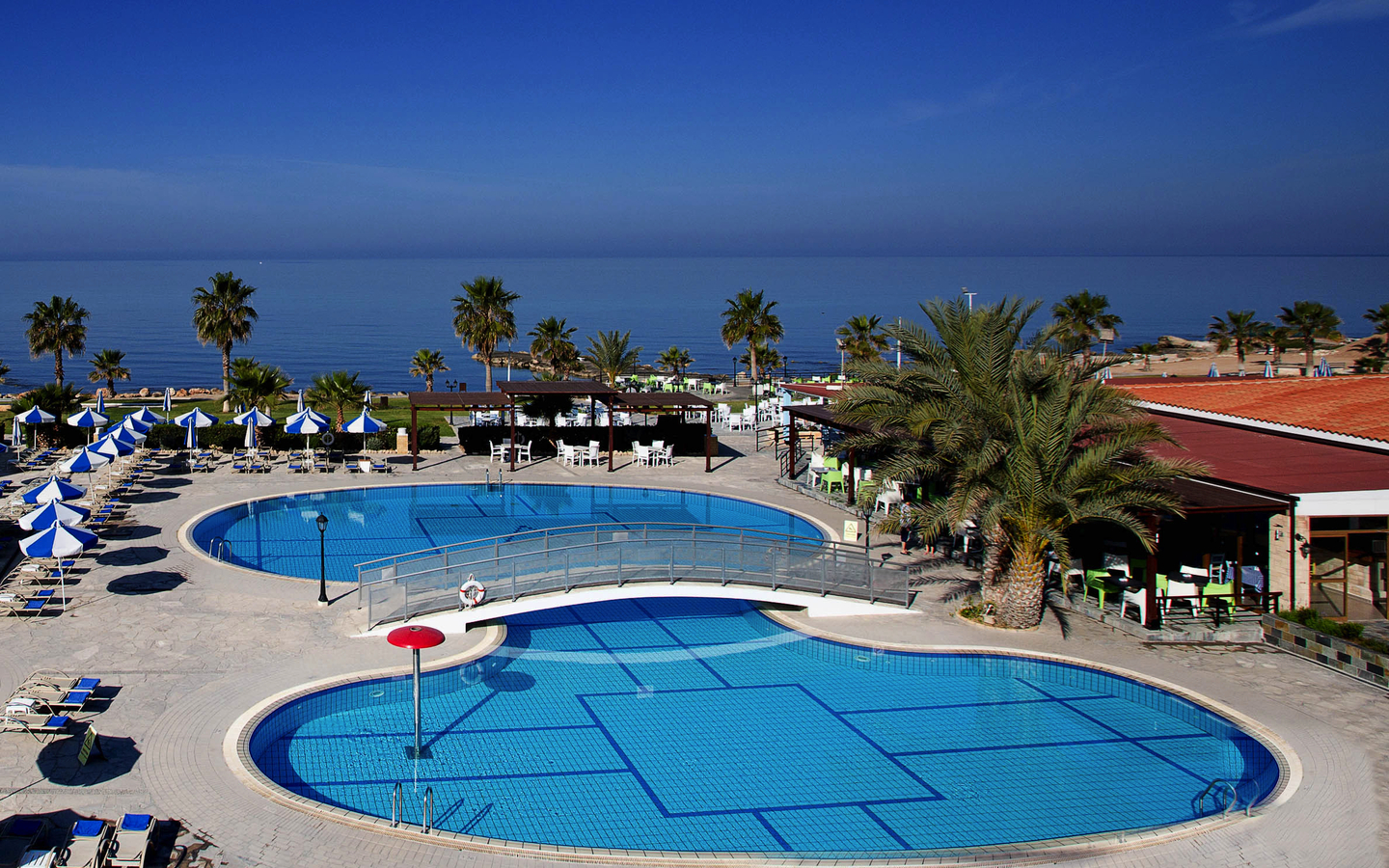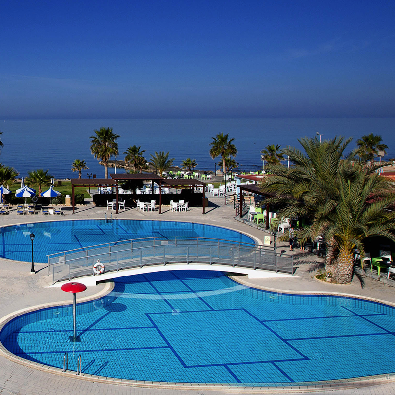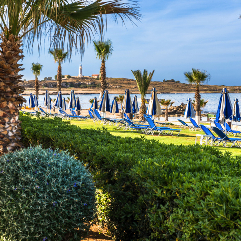 Die weitläufige Anlage liegt unmittelbar am Meer, zwischen dem historischen Leuchtturm und den berühmten Königsgräbern. Das Zentrum von Paphos mit seinen Tavernen, Geschäften und archäologischen Sehenswürdigkeiten erreichen Sie bequem zu Fuß über die Uferpromenade.