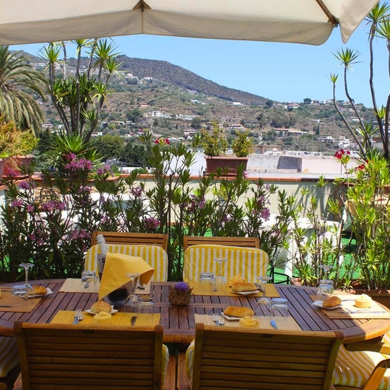 Nur wenige Gehminuten trennen das Hotel vom Hafen, der Flaniermeile und den wichtigsten Sehenswürdigkeiten der Insel. Auch die malerische Uferpromenade und die Felsstrände mit kristallklarem Wasser sind bequem erreichbar. Die Umgebung ist geprägt von kleinen Cafés, Boutiquen und typisch äolischer Architektur.
