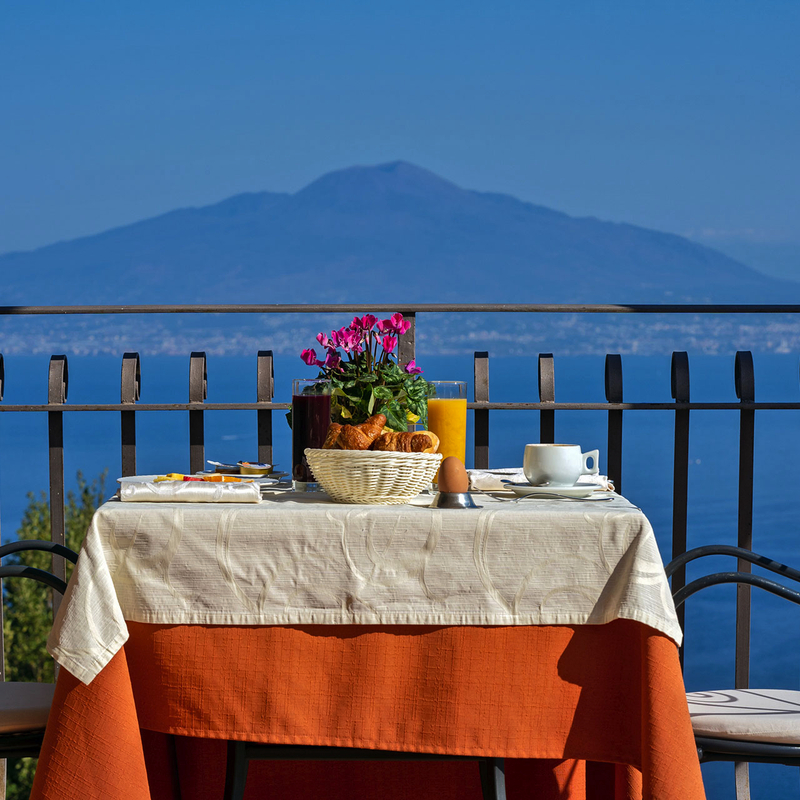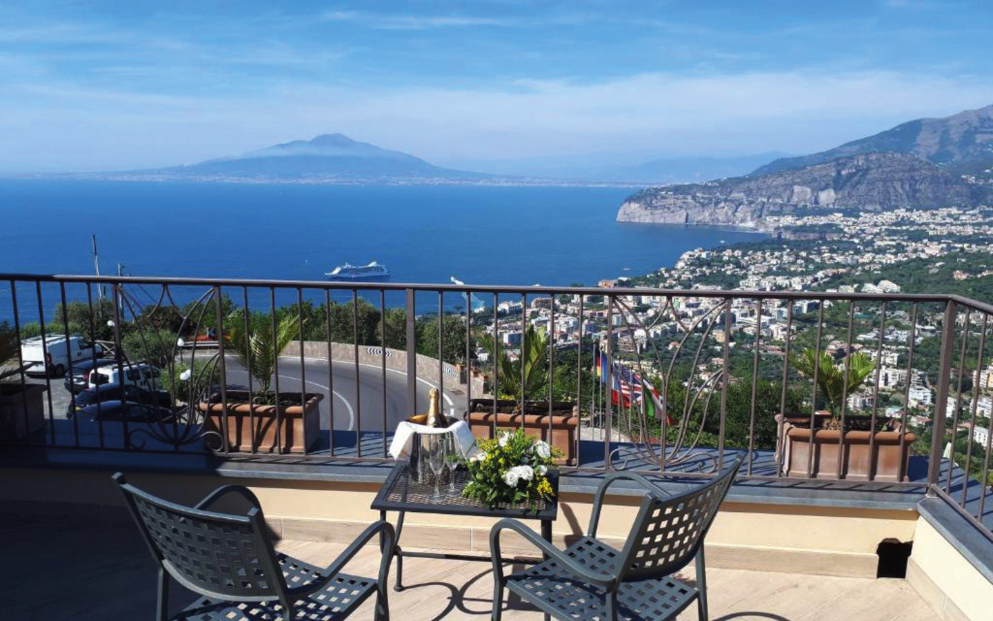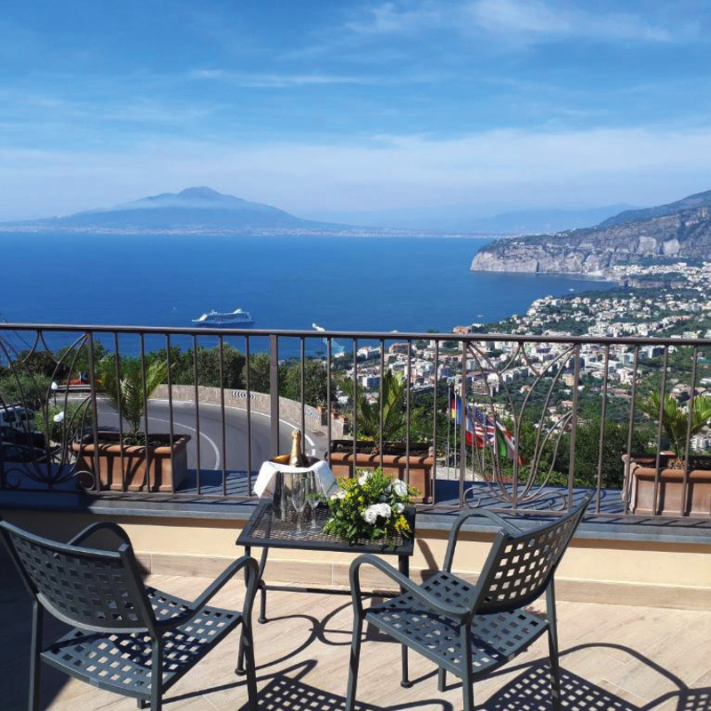 In spektakulärer Lage hoch über dem bekannten Sorrent liegt Ihr Hotel. Von hier aus hat man einen traumhaften Blick über die Region, das Meer bis hin zum Vesuv mit einzigartigen Sonnenuntergängen.