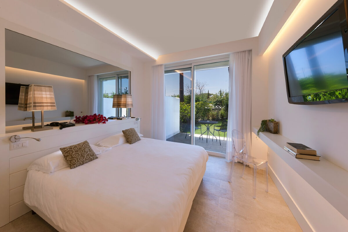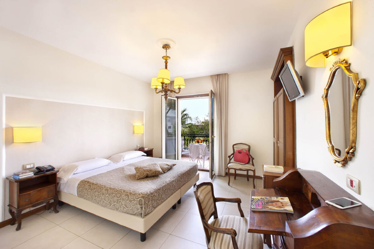 Im ruhigen Ortsteil Sant’Agnello, nur wenige Gehminuten vom Zentrum Sorrents entfernt, erwartet Sie das charmante Hotel Alpha – ein liebevoll restauriertes Haus, eingebettet in eine mediterrane Gartenlandschaft mit Palmen, Zitronenbäumen und exotischen Panzen. Der Bahnhof Sant’Agnello liegt nur wenige Gehminuten entfernt und bietet direkte Verbindungen nach Pompeji und Neapel. Auch der Hafen von Sorrent mit Fährverbindungen nach Capri, Ischia und Positano ist schnell erreichbar. Der großzügige Außenpool (saisonal) mit separatem Kinderbereich und Sonnenterrasse bietet einen herrlichen Blick auf den Golf von Neapel. Für entspannte Stunden stehen eine stilvolle Bar mit Panoramaterrasse und das mehrfach ausgezeichnete Gourmet-Restaurant zur Verfügung, dass für seine sorrentinisch-mediterrane Küche geehrt wurde.