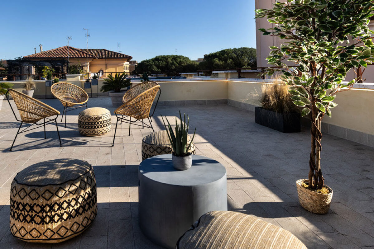 In einer ruhigen Seitenstraße gelegen, empfängt Sie das Hotel in einer Villa aus dem 19. Jahrhundert – nur wenige Gehminuten von der Lateranbasilika, der Heiligen Treppe und der Basilika Santa Croce in Gerusalemme entfernt. Die zentrale Lage zwischen dem Kolosseum und dem Hauptbahnhof Termini macht das Hotel zu einem idealen Ausgangspunkt für kulturelle Entdeckungen und Spaziergänge. Öffentliche Verkehrsmittel befinden sich in unmittelbarer Nähe und ermöglichen eine schnelle Anbindung an alle wichtigen Sehenswürdigkeiten der Stadt. Eine gepflegte Gartenterrasse lädt nach einem erlebnisreichen Tag zum Entspannen ein. Die Umgebung bietet zahlreiche Restaurants, Cafés und Einkaufsmöglichkeiten.